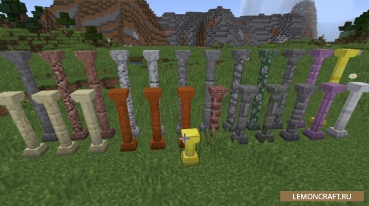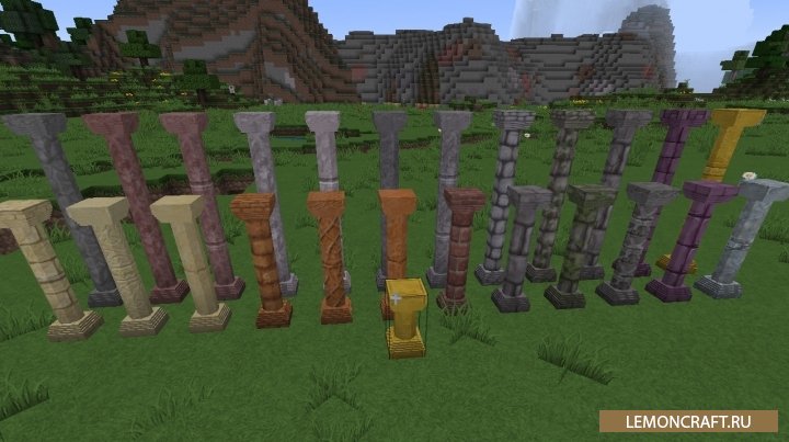 Перед нами довольно простой декоративный мод, с которым в вашем строительном арсенале появится 45 видов античных столбов. Они прекрасно впишутся почти в любую постройку и сделают её изысканной и неповторимой.