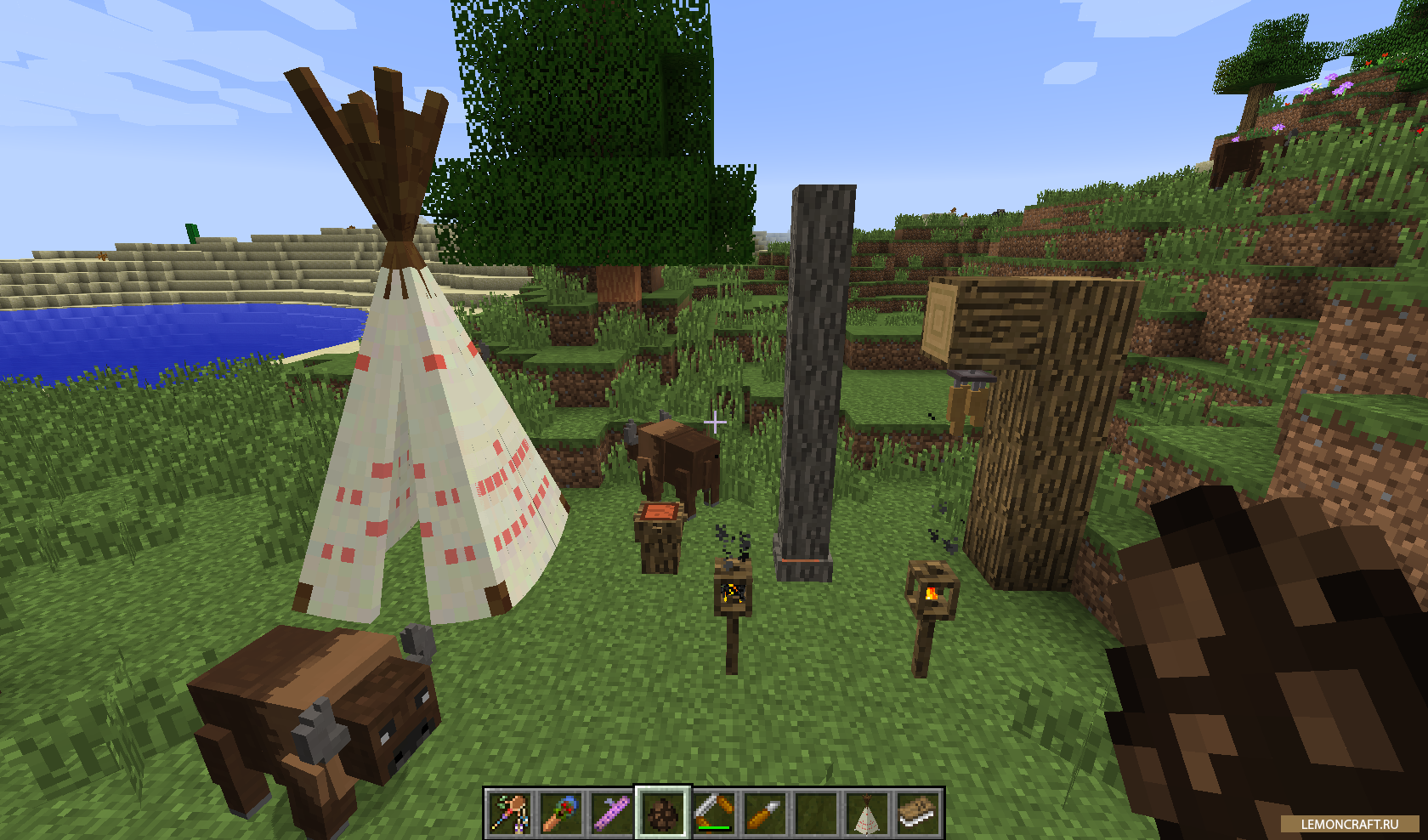 Окунитесь в мир индейских племен с модом Totemic. С помощью данного мода можно осуществить различные действия, такие как вызвать дождь, произвести подготовку к бою, призвать буйвола. Так же вы можете создавать различные тотемы животного, каждый из которых будет давать свой эффект, если вы будете с ним рядом. Для управления модм имеется специальная книга, которая поможет вам в игре.