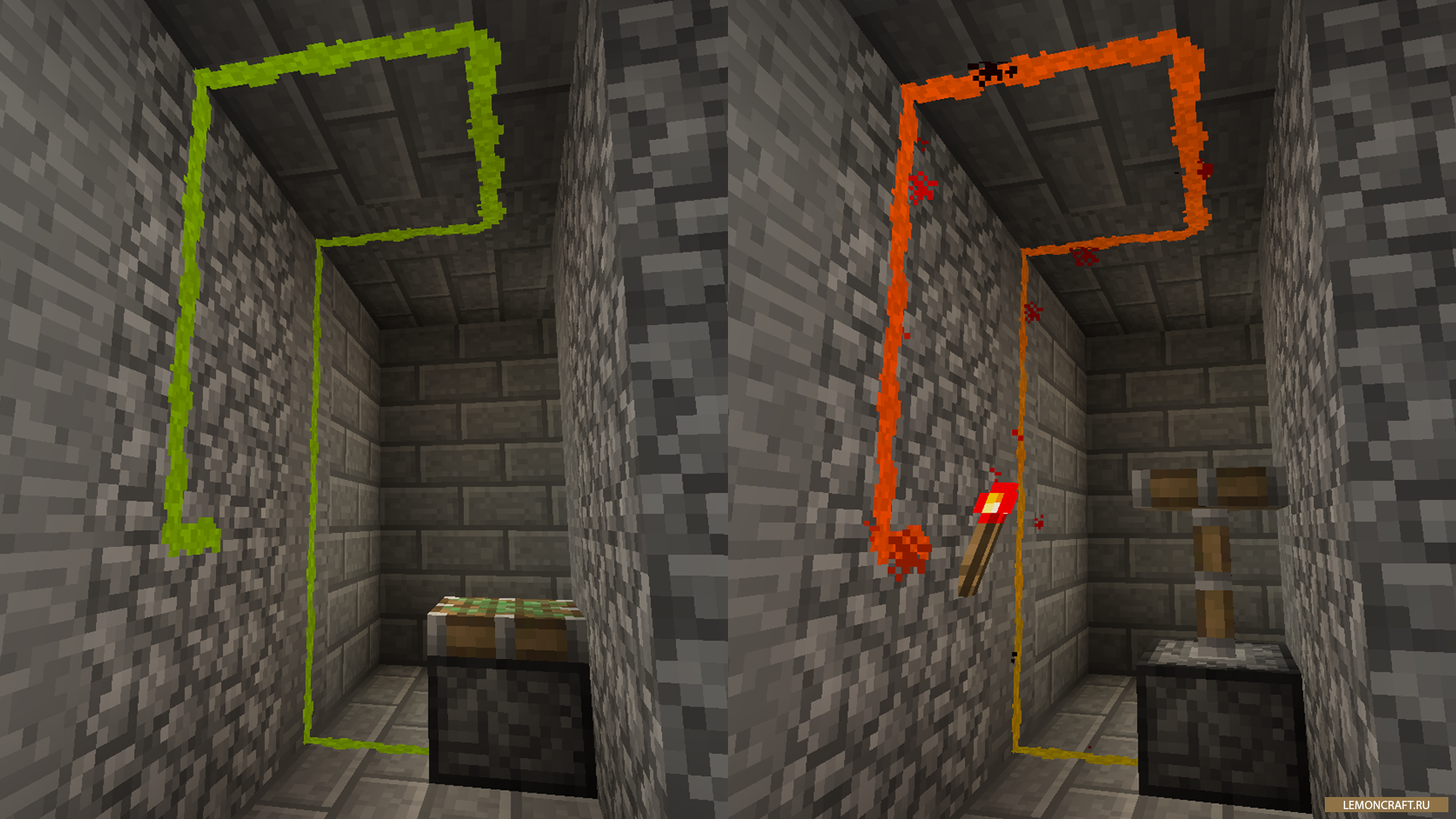 Мод Redstone Paste предназначен для упрощения рисования схем для различных механизмов. Он добавляет в игру липкую редстоун пасту, которая может прилепливать даже к потолку. Для получения данной пасты нужно убивать слизней.