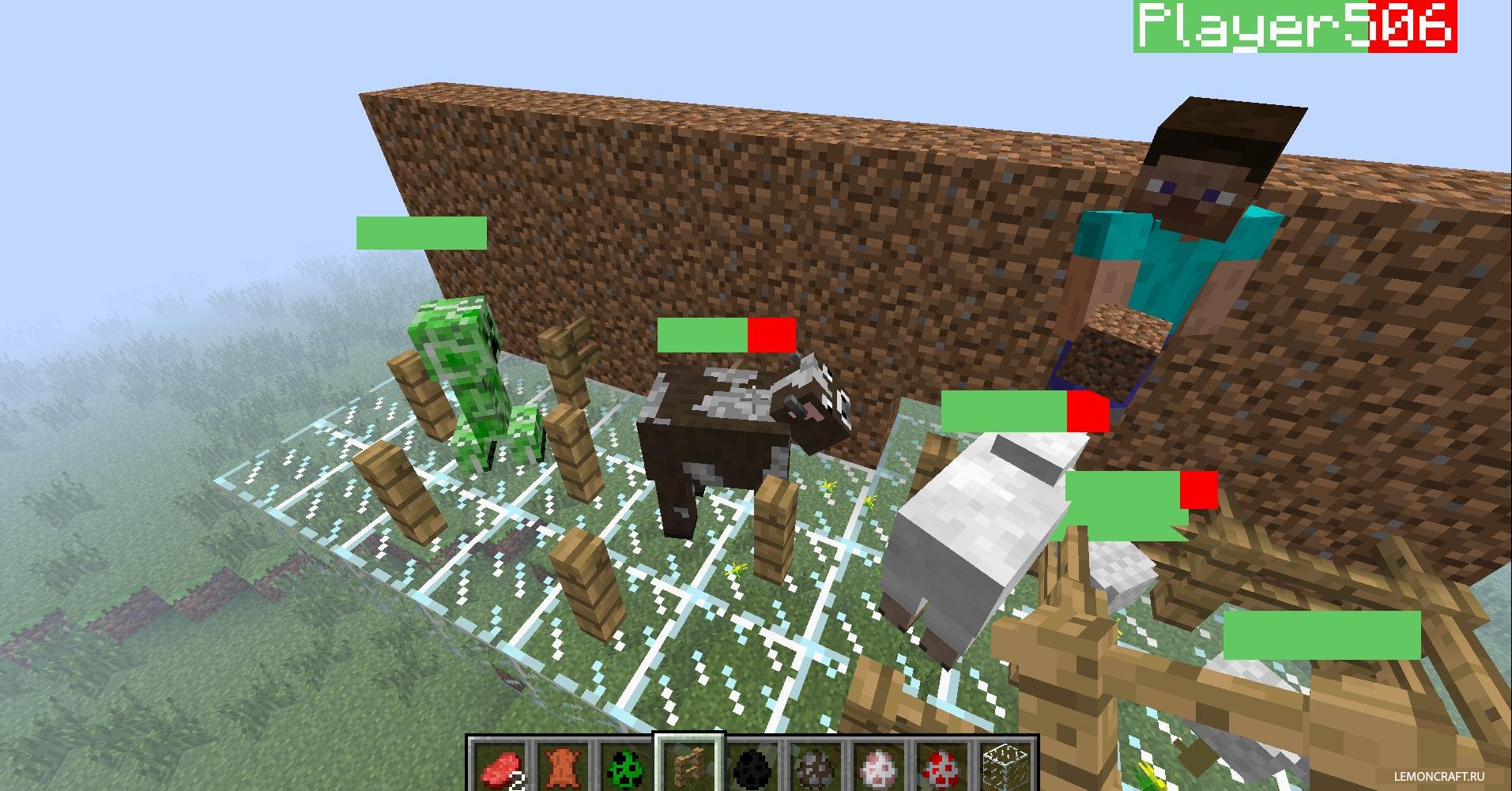 С модом Health Bar вы сможете контролировать свое здоровье по специальной полоске. В последних версиях мода данная полоска будет появляться только у вас, у мобов ее не будет. Так же учтите, что полоска появится только после того, как вам будет нанесен урон.