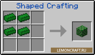 Кактусовые сундуки: обычный сундук, только со временем в нём становится меньше пространства. Хоппер из кактуса: как и обычный по своим данным, только со временем в нём становится меньше места. Раздатчик из кактуса: нет инвентаря, стреляет шипами. Кактусовый TNT: стреляет шипами во всех горизонтальных направлениях. Кактус-ковёр: наносит урон мобам. Если на нём будет лежать предмет, то он исчезнет через 2 минуты. Кактусовые кирпичи Кактусовая дверь: обычная дверь, в общем-то. Но больно с ней взаимодействовать. Резной кактус: декоративная кактусовая версия тыквы. Фонарь Jack'O'Lantern Кактусовый торт: больно есть. Кактусовая вагонетка: быстрее и дешевле, чем обычная вагонетка. Кактусовая Корова Кактусовый крипер: при смерти выстреливает шипами