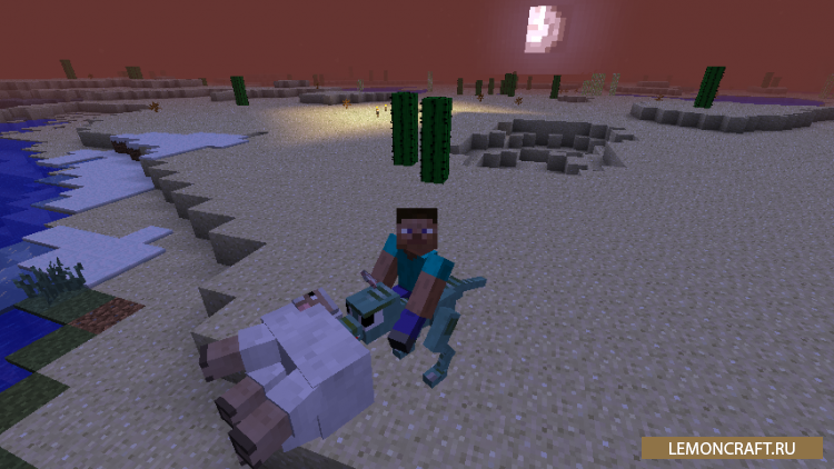Мод на верховых мобов Animal Bikes добавит в игру возможность прокатиться на различных мобах верхом. В игру будет добавлен специальный инструмент - руль, с помощью которого вы сможете создать покорного моба. Для этого достаточно положить руль рядом с собой и рядом с вами появится моб, которого вы сможете оседлать