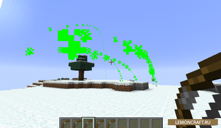 Мод на цветной трассер для стрел Arrow Trails позволит вам создать лук, который будет пускать трассирующие стрелы (путь летящей стрелы будет освещен различными цветами). Для создания такого лука достаточно положит на верстак кисть и краситель, добавленные этим модом, и сам лук на верстак.