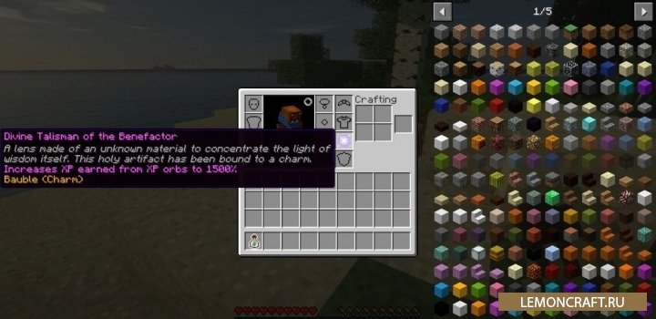 Мод на талисман для опыта Beneficium добавит в игру два вида талисманов, с помощью которых вы сможете повысить свой опыт в 5 и 15 раз соответственно. Первый вид талисмана можно скрафтить, второй же вид вы сможете найти в подземельях, но для этого придется облазить все доступные места. Для работы талисманов вы должны держать их в инвентаре. Проблемы с набором опыта? Этот мод ускорит процесс набора опыта и сделает игру более захватывающей.