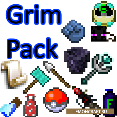 Мод на большой пак Grim Pack является довольно большим модом, который добавит в игру новые декорации, еду, полезные блоки, инструменты, технологические машины, оружие и броню.