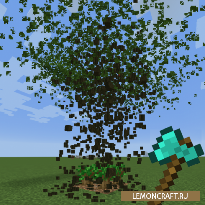 Мод на лесозаготовку Tree Harvester добавляет в игру возможность срубать все дерево одним ударом, а на месте срубленного дерева высаживать новый саженец.